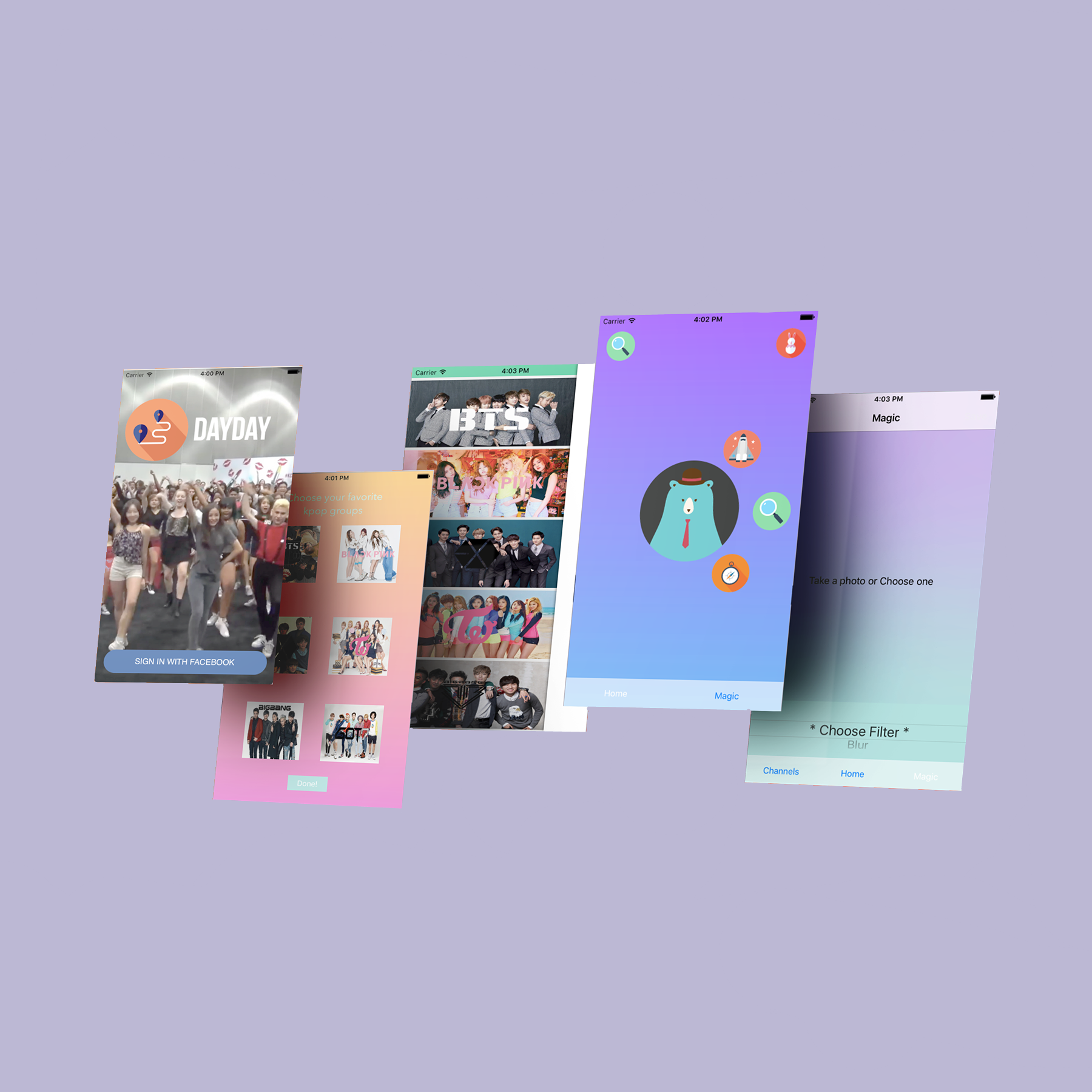 Day Day is an interactive mobile app which allows Korean pop culture fans to chat, purchase merchandise, and attend local meetups.